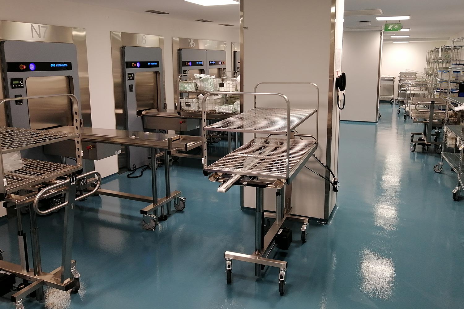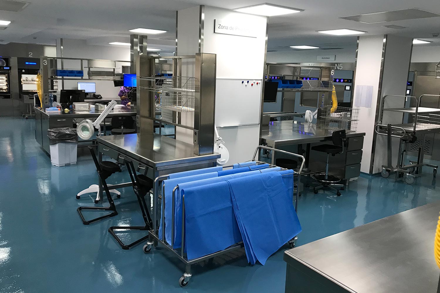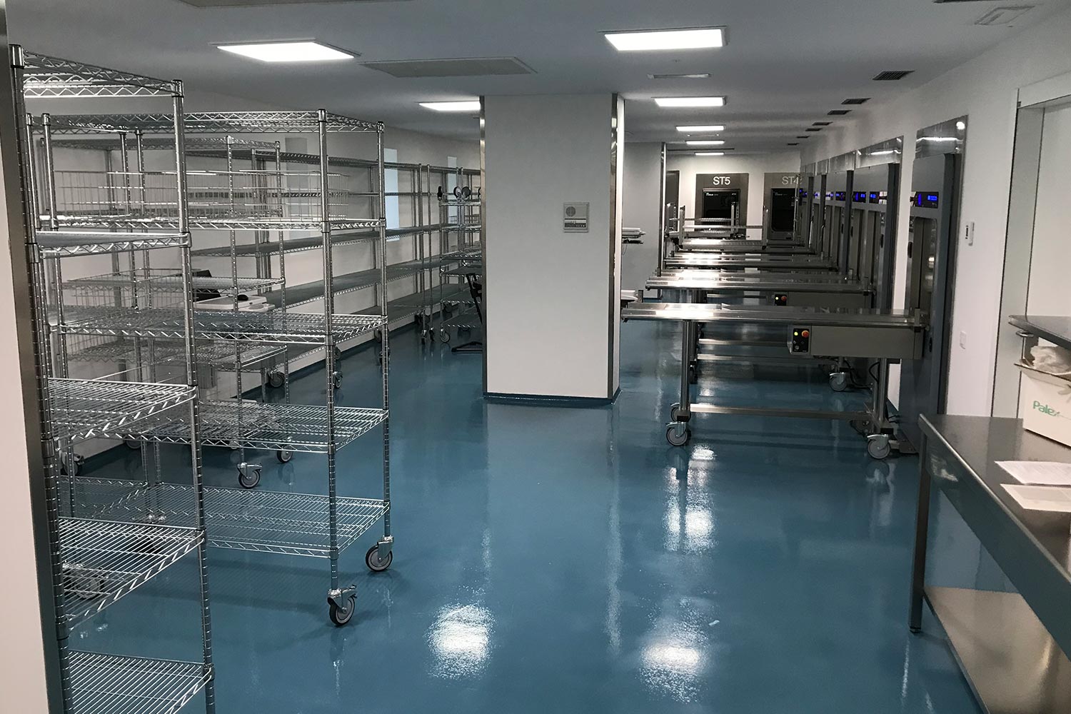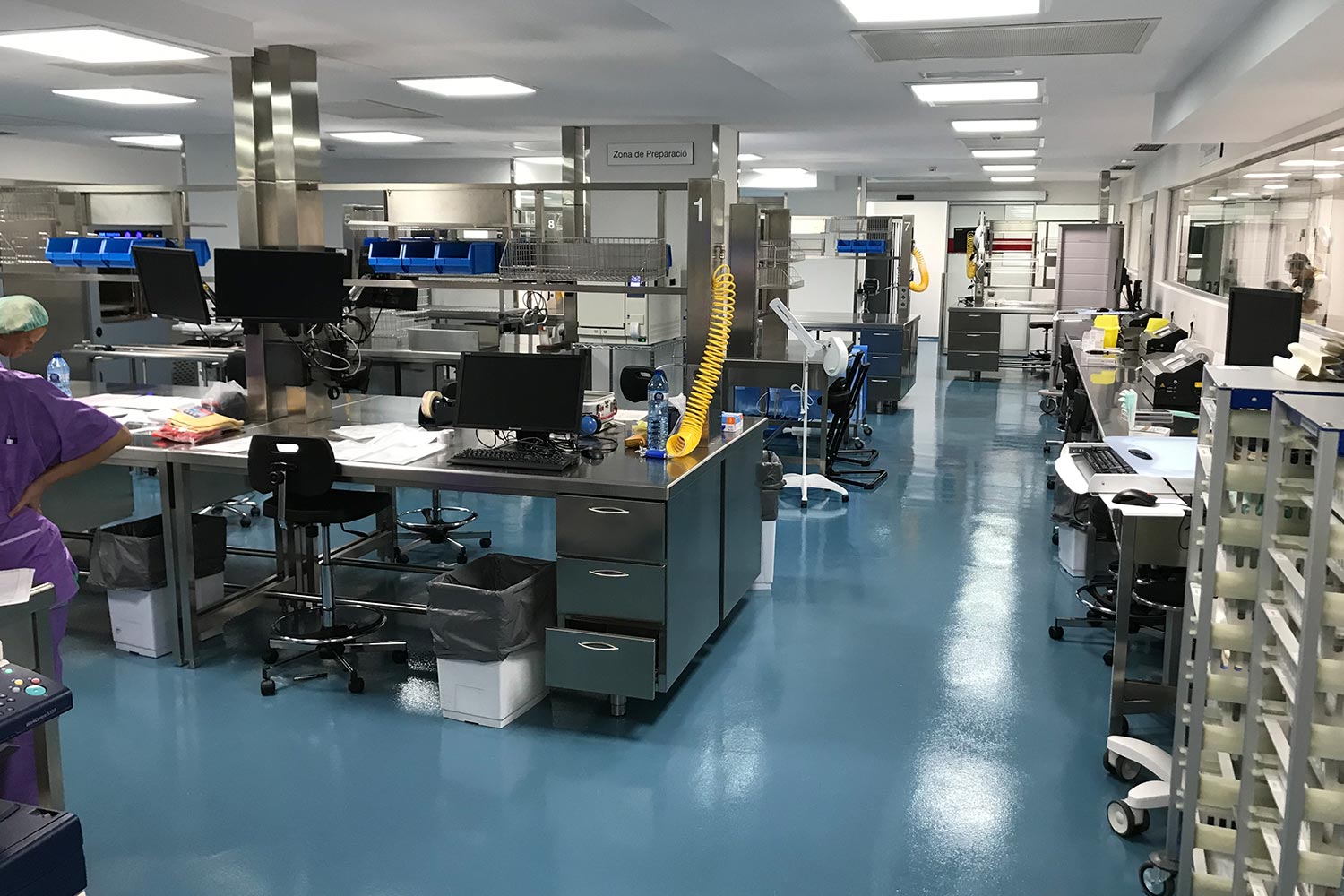 Adecuación de zona de esterilización en la Planta Sótano del Módulo D del Hospital Universitario de Bellvitge. Derribo de parte de la tabiquería existente y adecuación de la nueva distribución con tabiques cerámicos y mamparas de aluminio y vidrio. Y realización de revestimientos y carpintería metálica y de madera.