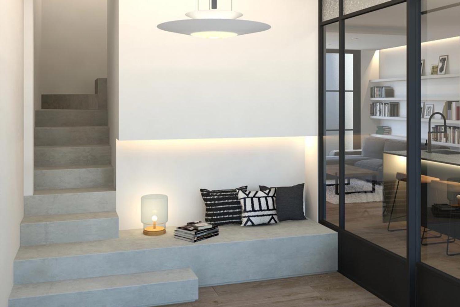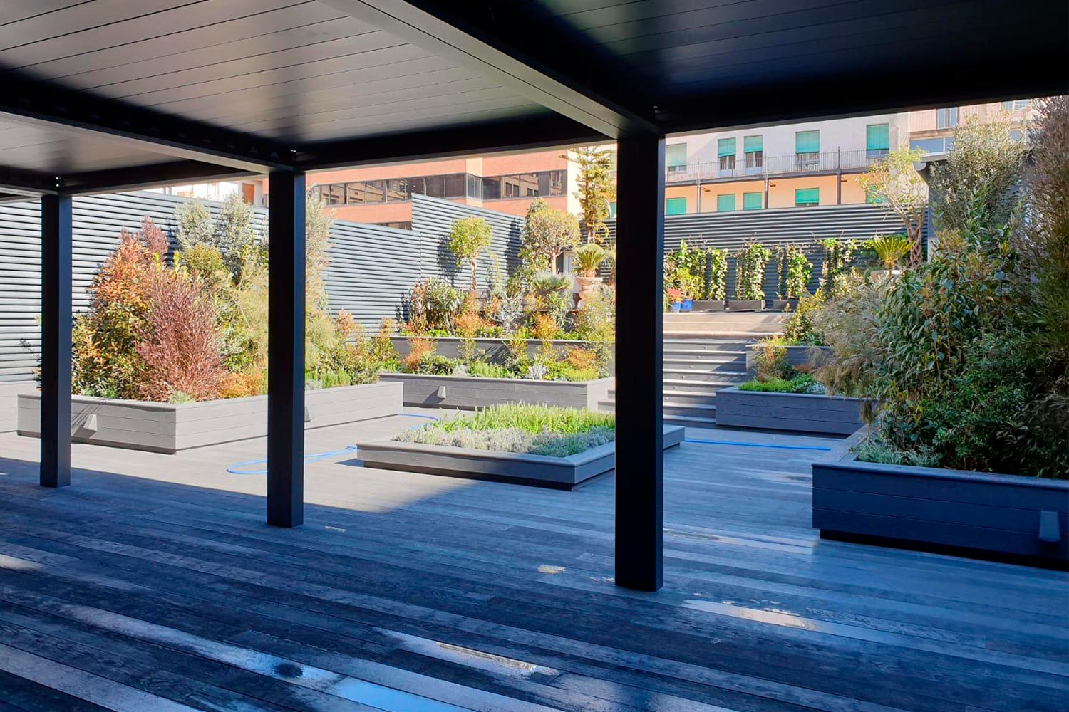 Reforma interior de vivienda y trabajos de revestimientos y de carpintería de taller interior. Incluyendo trabajos de carpintería en terraza con formación de jardineras y mobiliario exterior.